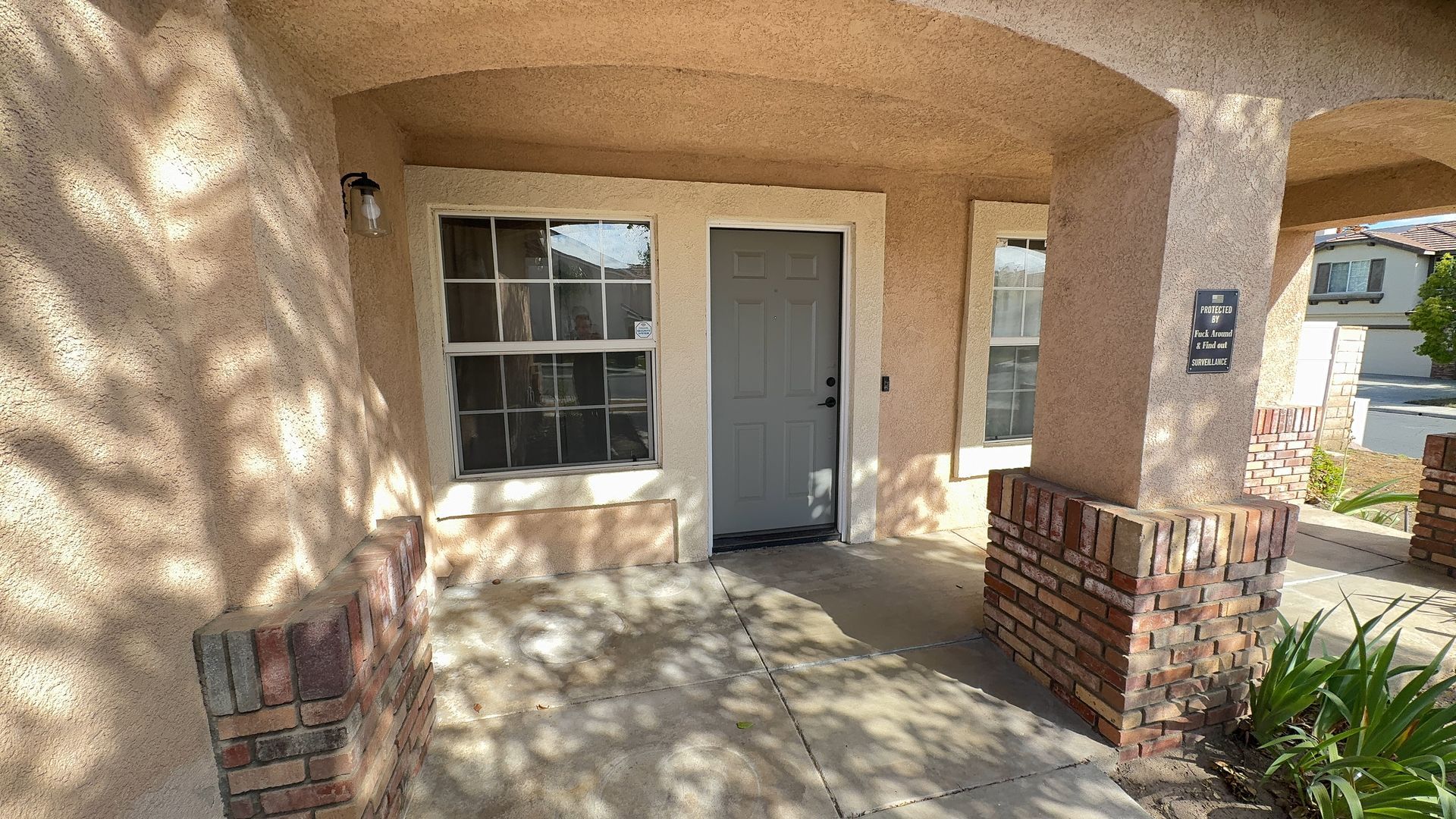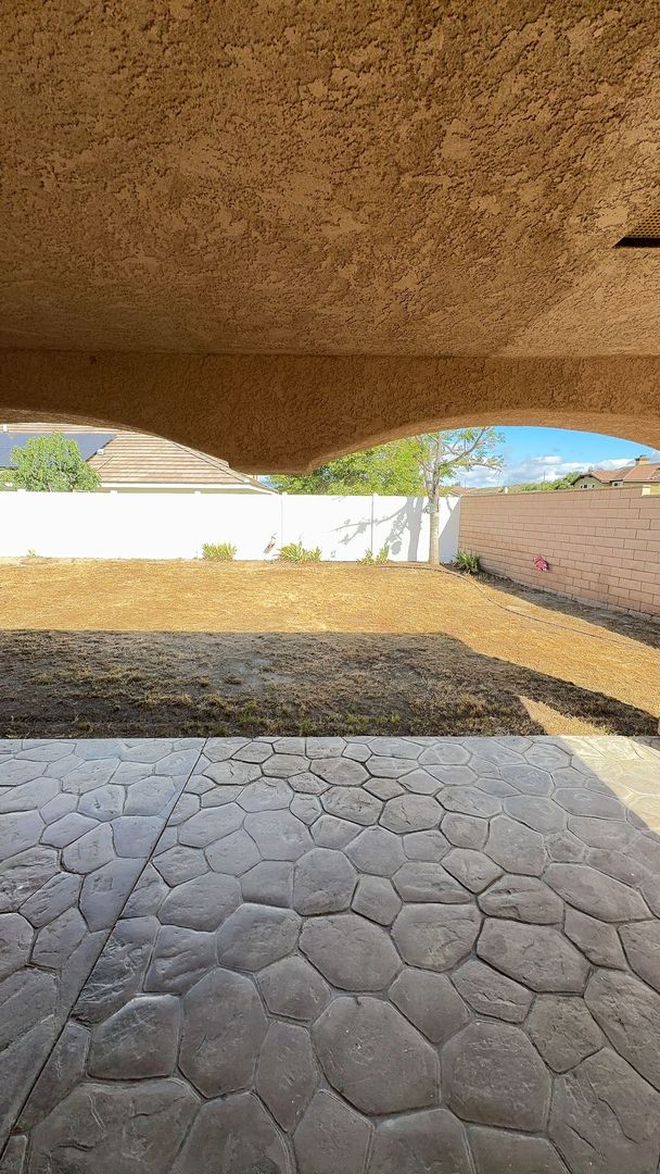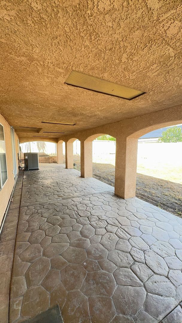 • Oversized backyard with fully covered patio and elegant architectural arches
